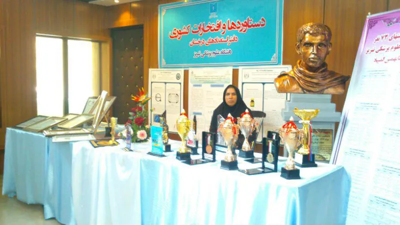 اولین غرفه دستاوردها و افتخارات کشوری دانشجویان استعداددرخشان دانشگاه علوم پزشکی تبریز در تاریخ 22/7/96 در سالن ورودی تالار شایانمهر دانشکده پزشکی ، همزمان با تشریف فرمایی معاون اول محترم رئیس جمهور و وزیر محترم بهداشت درمان و اموزش پزشکی