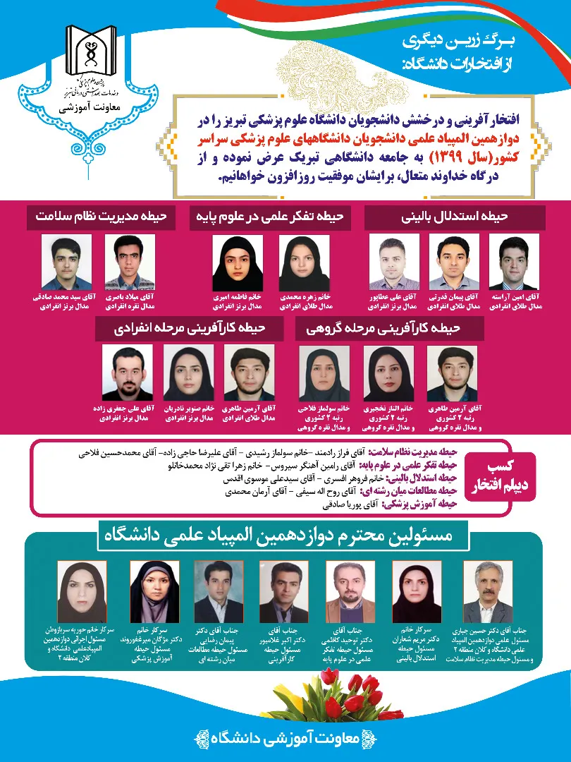 افتخارآفرینی و درخشش دانشجویان دانشگاه علوم پزشکی تبریز