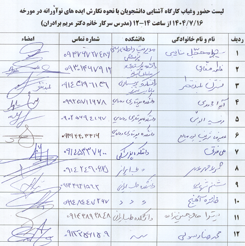 صورتجلسه آشنایی دانشجویان کمیته توسعه آموزشی با نحوه نگارش ایده های نوآورانه در مورخه 16/7/1404